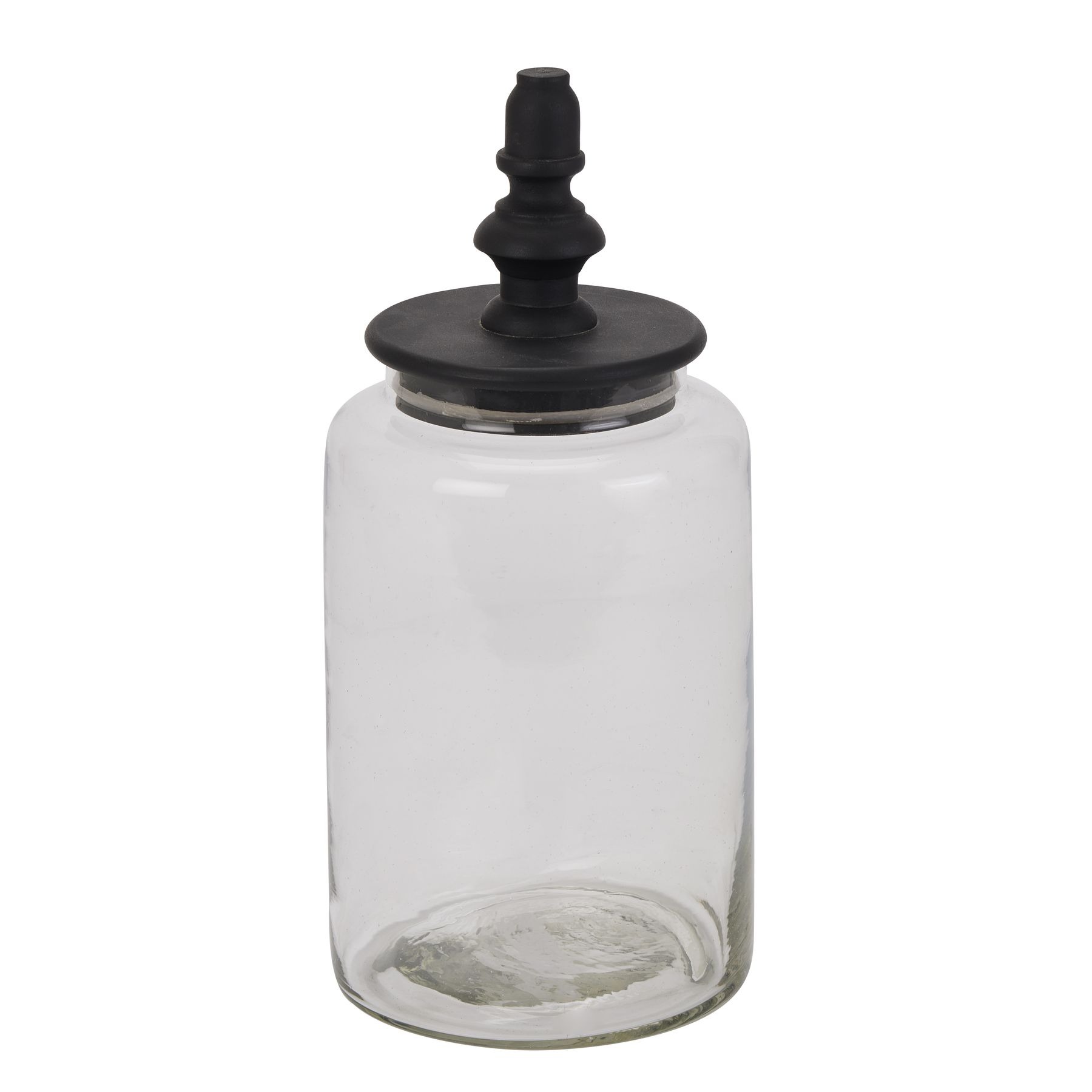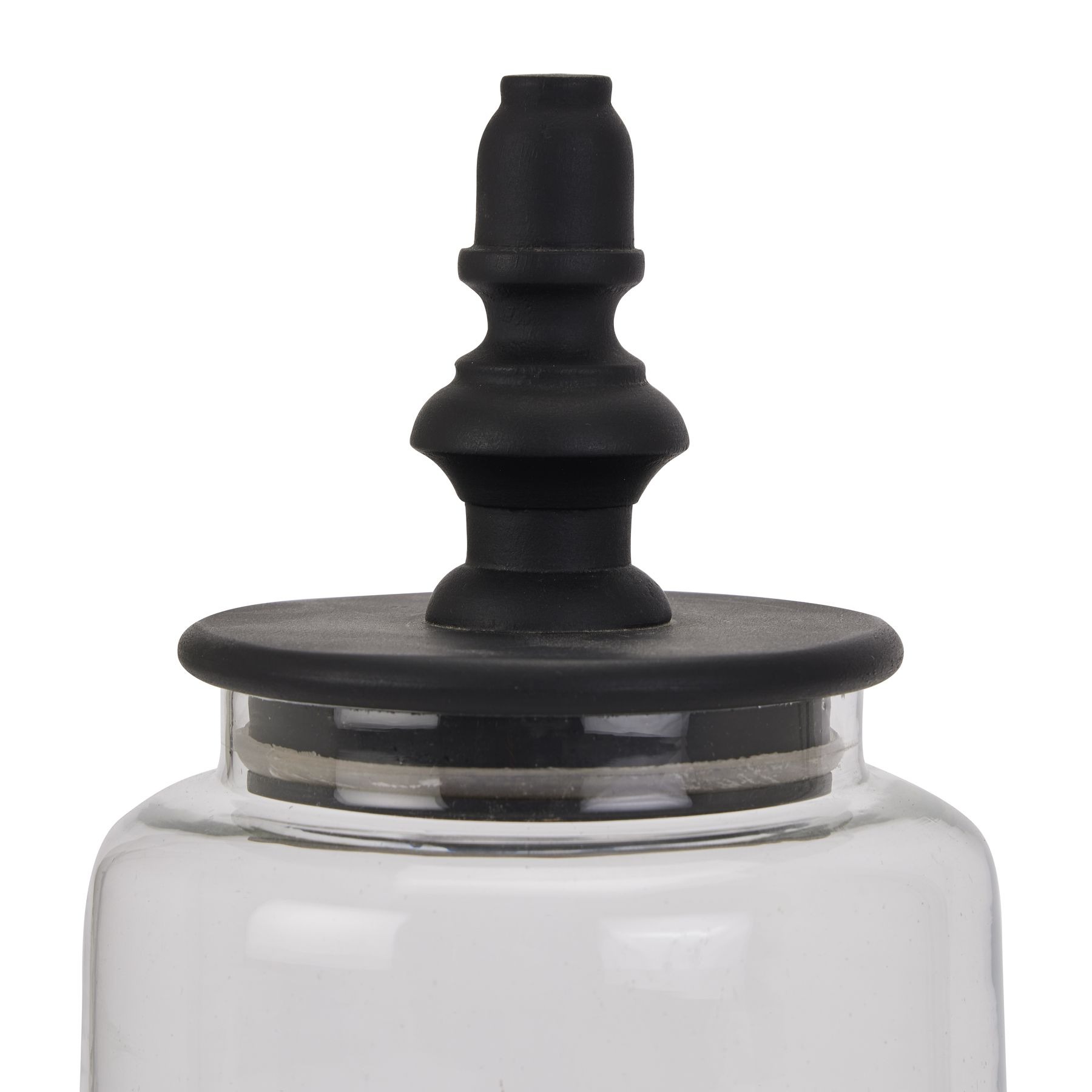 Introducing our stylish black finial topped canister, the perfect finishing touch to any sideboard or shelfie. This canister is designed to elevate your home decor with its sleek and modern design. The handcrafted wooden finial topped lid adds a touch of elegance and sophistication to the overall look of the canister.