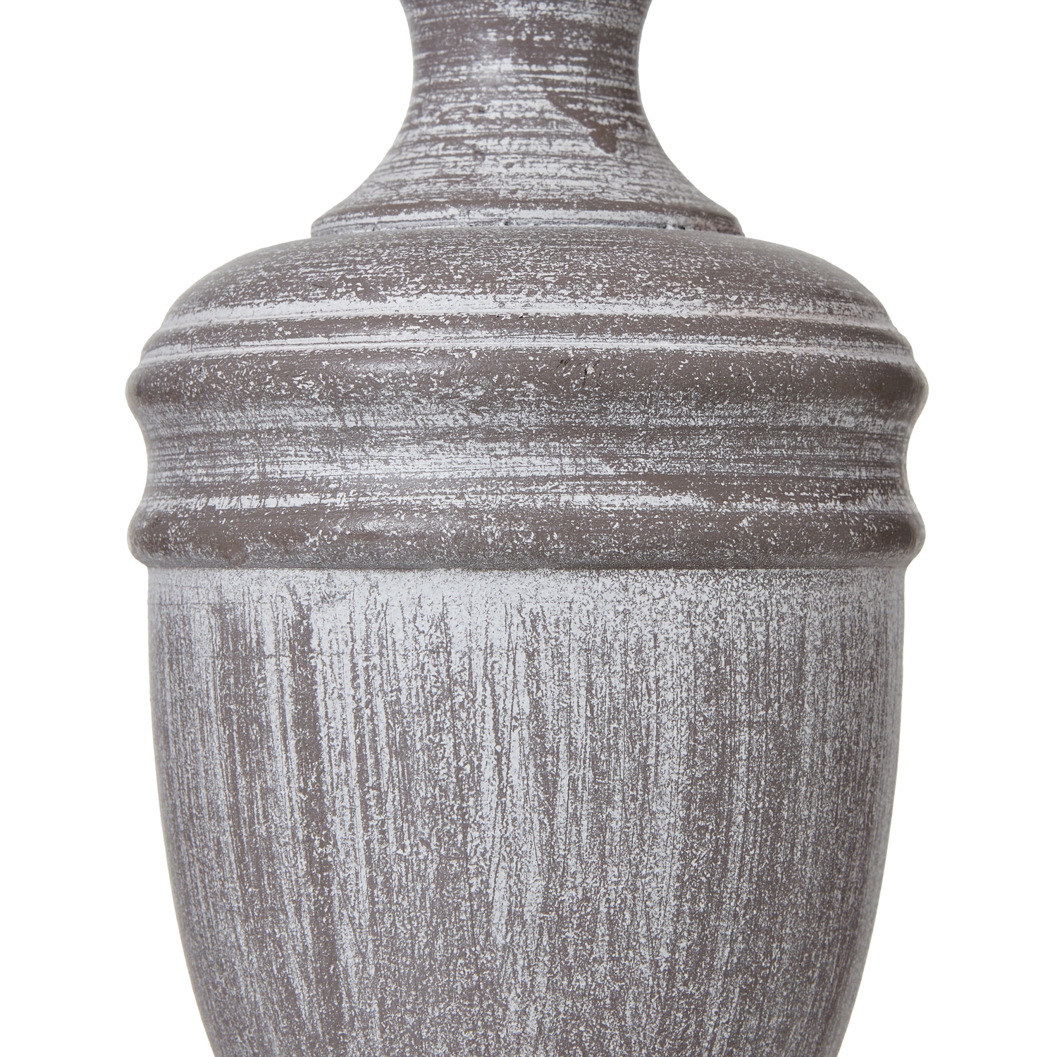The Nola Urn Table Lamp with Linen Shade is a captivating addition to any space. Crafted with a striking urn-shaped base and adorned with intricate details, this lamp exudes a timeless elegance that will elevate your interior design. The neutral linen shade perfectly complements the weathered gray finish, creating a harmonious and sophisticated look. This versatile piece can seamlessly integrate into a variety of decor styles, from rustic farmhouse to modern minimalist. Pair it with other textured accents, such as woven baskets or wooden furnishings, to curate a cozy and inviting ambiance. Bring a touch of refined charm to your retail space or online store with the Nola Urn Table Lamp.
