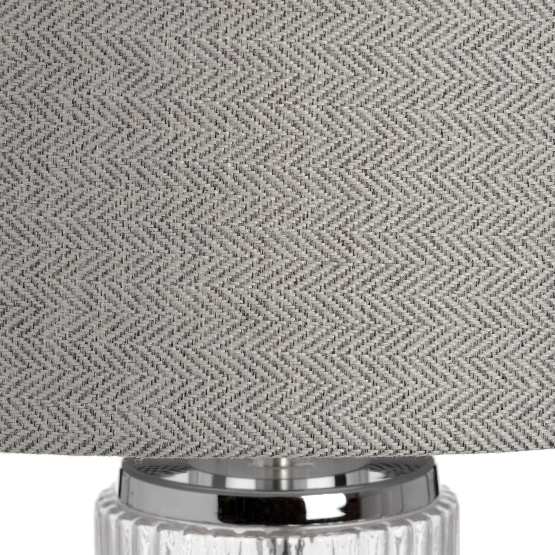 Add a sleek and contemporary Roma Glass Table Lamp to your lighting collection. Featuring a carved glass finial and chrome base.